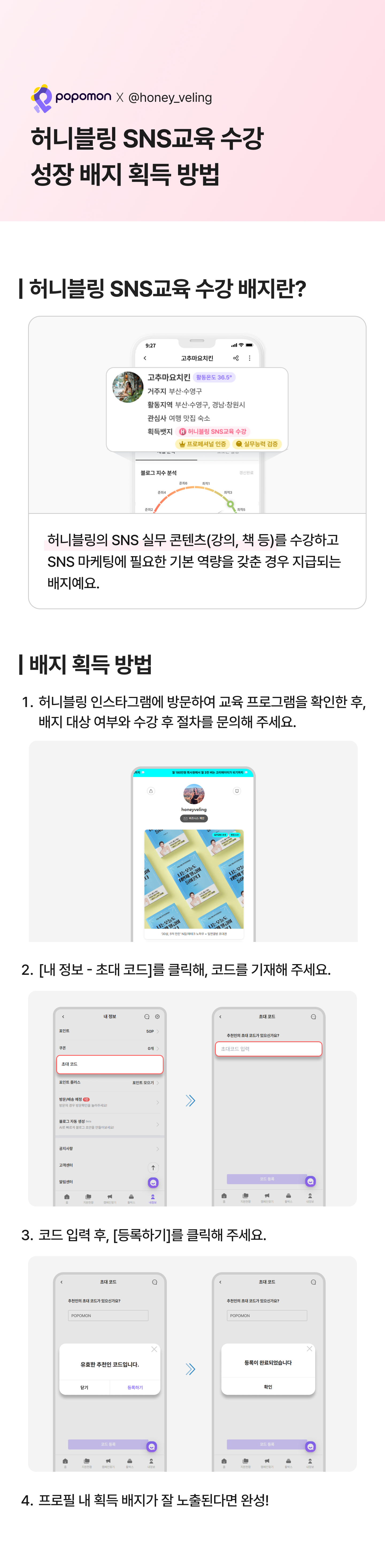 허니블링 SNS교육 수강 성장 배지 획득 방법